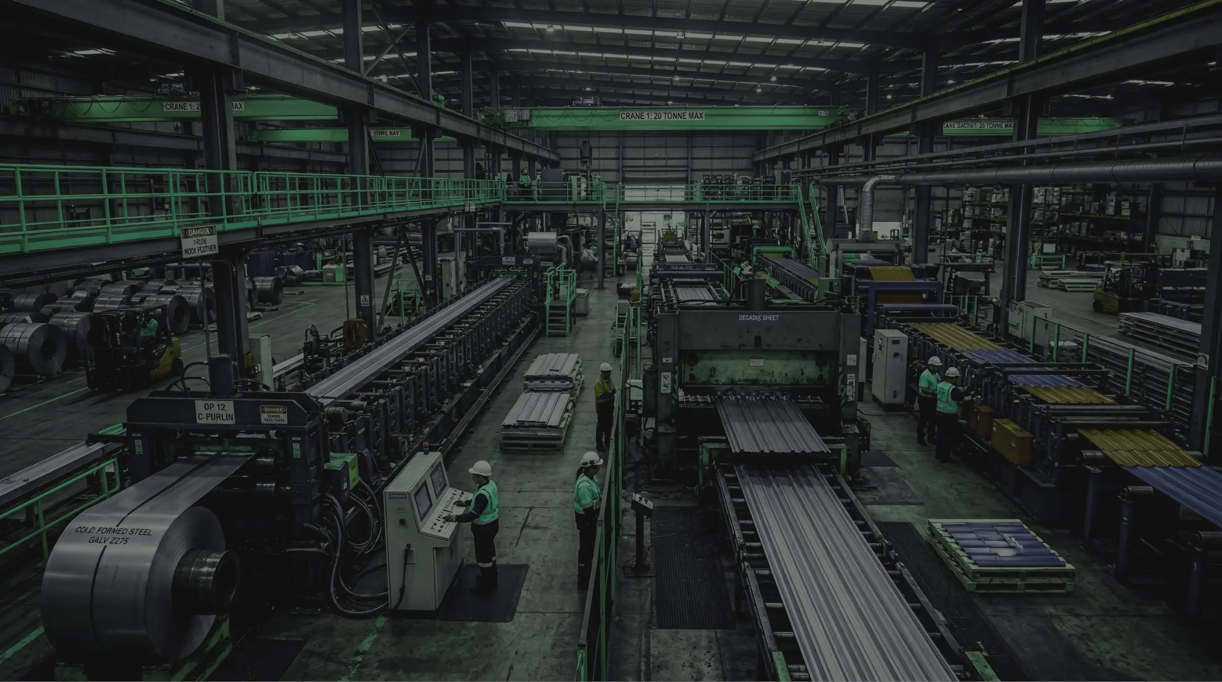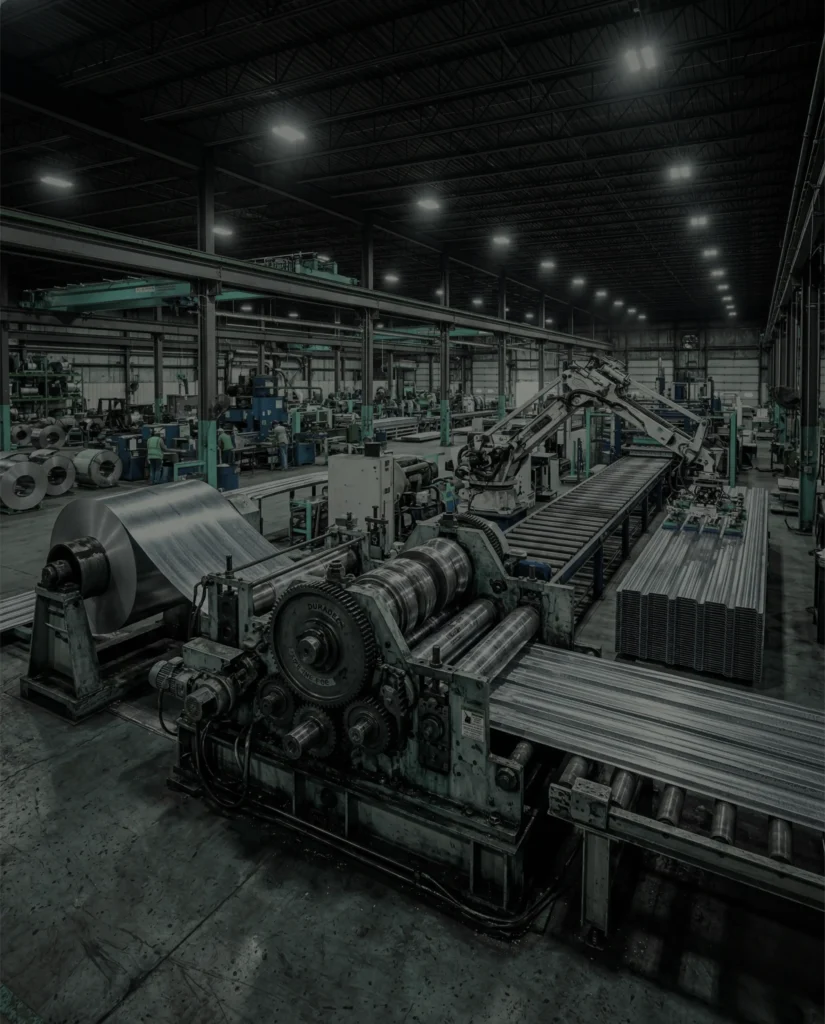 Computer-controlled roll forming lines for precision metal profiling. Capable of producing 63 different product profiles with millimeter accuracy.